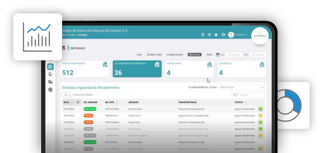 Solução para gestão integrada de serviços de transporte, tratamento e destinação de resíduos. Unindo um CRM para prospecção comercial, homologação dos atores, integração com sistemas públicos de fiscalização e controle financeiro para um monitoramento operacional totalmente integrado.